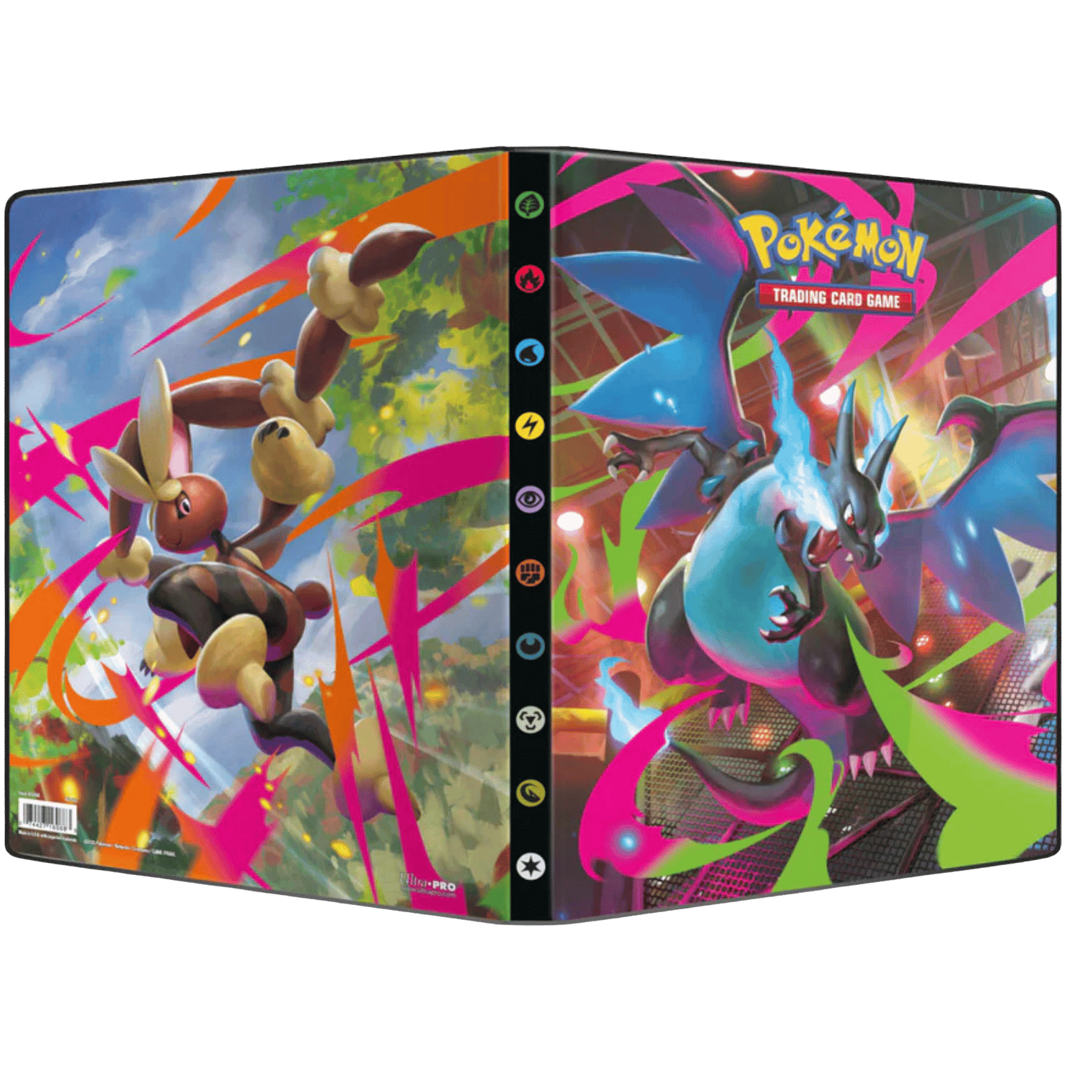 - Officially licensed Pokémon Trading Card Game 9-Pocket Portfolio featuring Mega Charizard X and Mega Lopunny