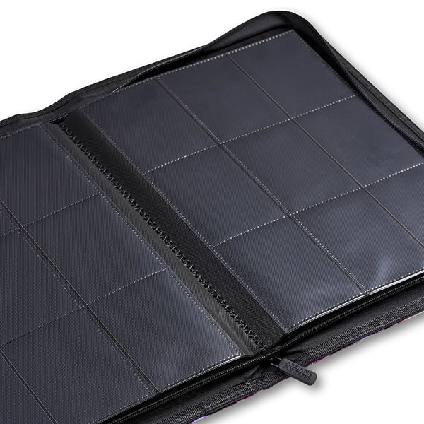 The Stained Glass Collection binder transforms card storage into an art form with high-resolution, stained glass-inspired artwork on a premium nano-fiber exterior. Designed for serious collectors and players, this 9-pocket, side-loading binder offers superior protection and a refined aesthetic.