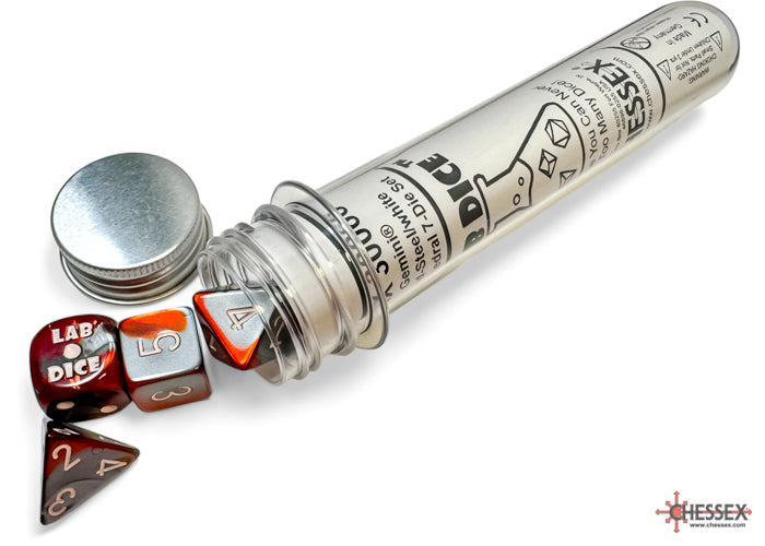 Chessex Polyhedral Lab Dice Set: Gemini (Red-Steel/White)