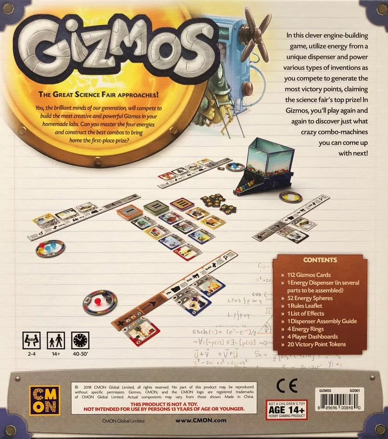 In Gizmos, you win the game by gaining victory points from building engines. And engines help you get things done faster. Whoever builds the greatest machine and collects the most victory points wins!