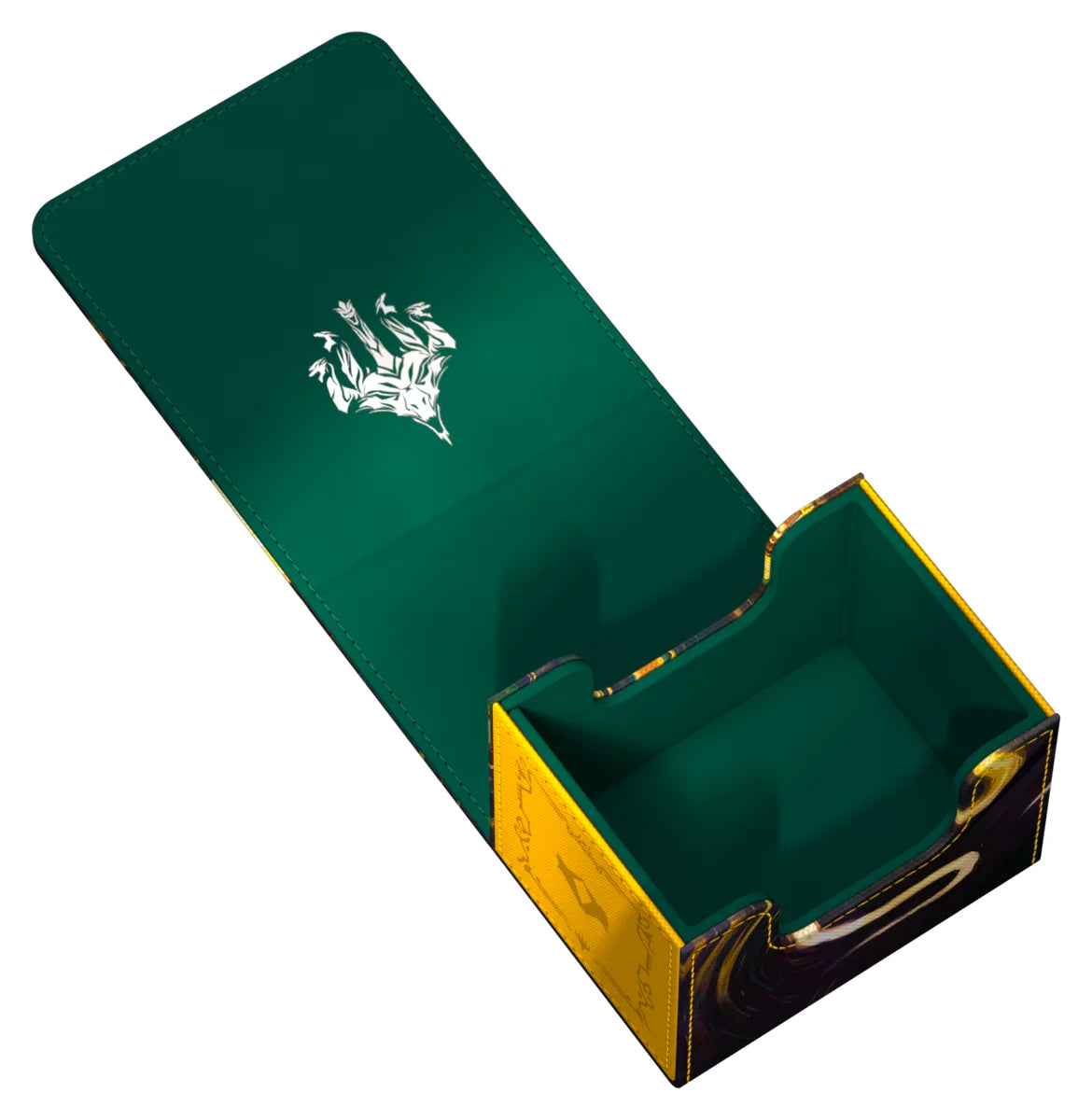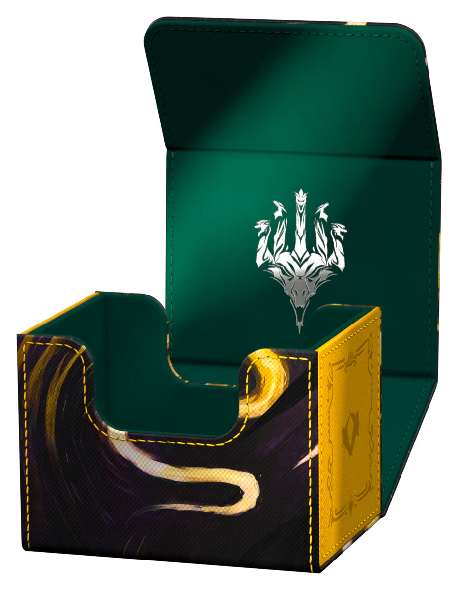 The Sidewinder 100+ made from durable Xenoskin material holds up to 100 double-sleeved or 120 single-sleeved cards, which are kept secure in the deck box thanks to a strong magnetic closure and soft microfiber interior. The sturdy, high-quality Xenoskin surface of the Sidewinder is printed in full color with officially licensed artwork from Magic: The Gathering’s Tarkir: Dragonstorm set.