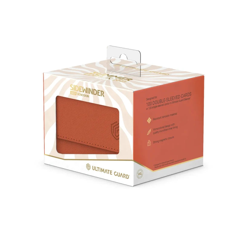 Catch the ultimate summer vibes with Ultimate Guard's Sidewinder 100+ Xenoskin from the limited "Summer Edition 2025" in four vibrant new colors: Dandelion, Peach, Lime and Lagoon! The Sidewinder deck box features a resistant Xenoskin outer casing, quality microfiber inner lining, and a strong magnetic closure. Designed for up to 100 double-sleeved or 120 single-sleeved cards in Ultimate Guard Sleeves of trading card games like Magic: The Gathering, Pokémon, Lorcana, One Piece or Yu-Gi-Oh!