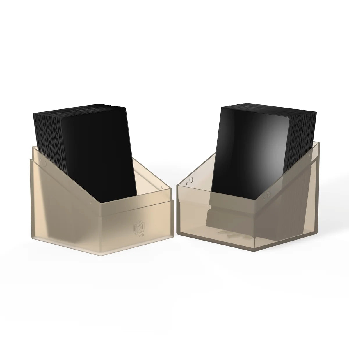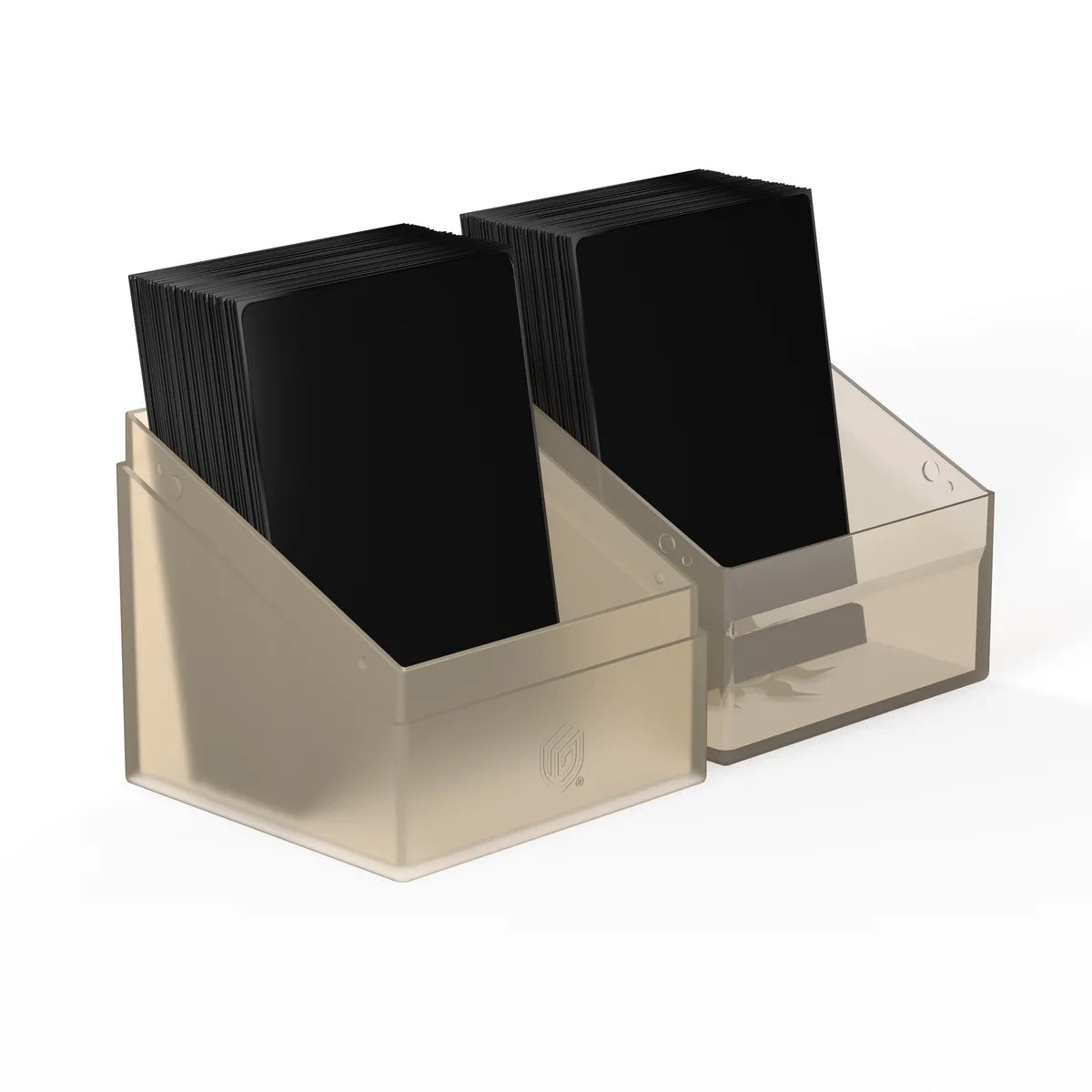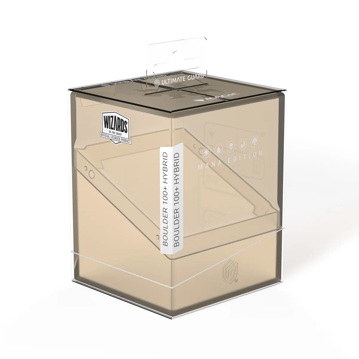 Ultimate Guard's Boulder 100+ Hybrid combines the completely transparent top of the Boulder Clear with a soft-touch base in the style of the original Boulder. The officially licensed MTG deck box is easy to open, but offers reliable protection for your cards thanks to its sturdy case and secure closure. The Boulder 100+ Hybrid holds up to 100 double-sleeved cards and is suitable for all Magic: The Gathering formats such as Commander (EDH), Standard or Modern.